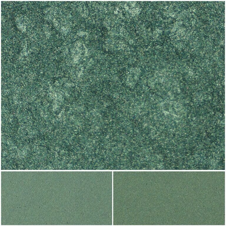 Sachet Green is engineered using synthetic fluorphlogopite, a superior alternative to natural mica. This ultra-pure substrate delivers brighter, cleaner color and higher chroma versus traditional pigments. The perfectly smooth surface of the synthetic mica platelets enhances light reflection, creating the signature illuminating patina and satin finish that defines the Sachet series.