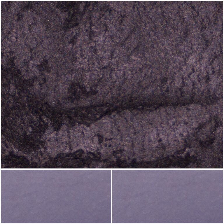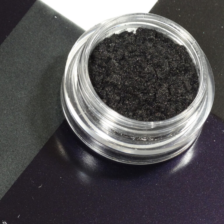 The pigment’s unique color is achieved by depositing layers of Titanium Dioxide and a specific black Titanium Dioxide variant onto the synthetic mica platelets. This process creates a deep, dark base with a subtle red undertone and a sophisticated satin finish, offering depth and dimension without the high sparkle of traditional pearl pigments.