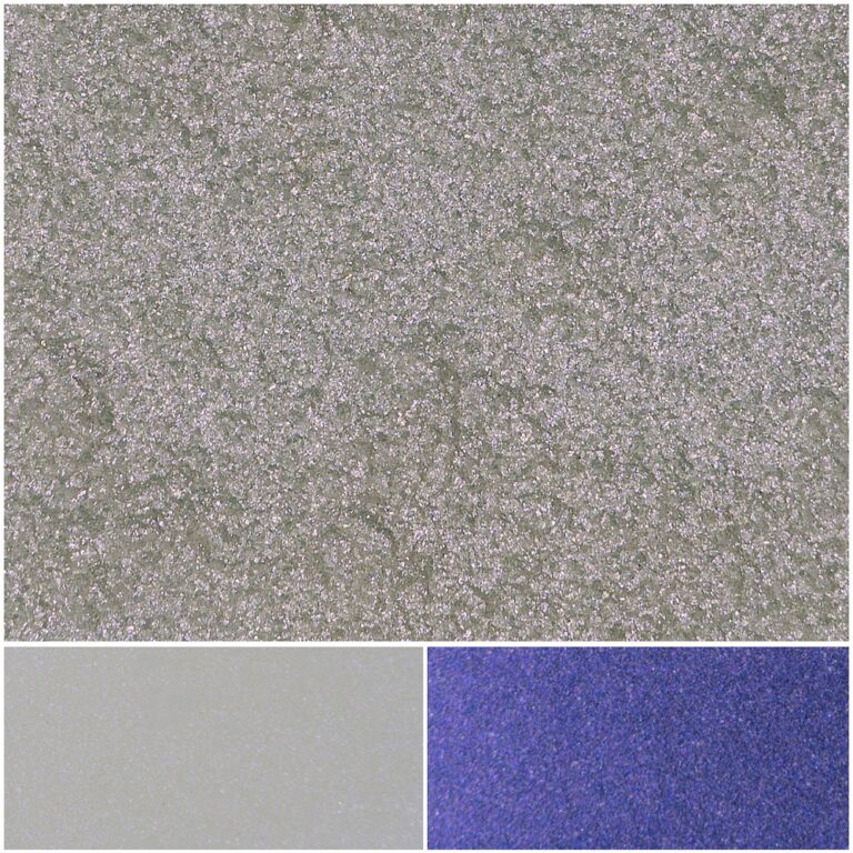 Ideal for eye shadows, nail lacquers, and premium cosmetic products. The violet interference effect adds a sophisticated, multidimensional quality to formulations. The chromatic shift is most pronounced over dark bases. Compatible with pressed powder, cream, and liquid formulation systems.