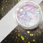 A key innovation of SilikMira Ice YGB is its engineered, ‘crushable’ behavior. While the flakes appear large and chunky in the package, they are designed to break down under gentle pressure during application. This enables transformative textures that start as a statement flake and blend into a smoother, high-shine shimmer for a unique sensorial experience.