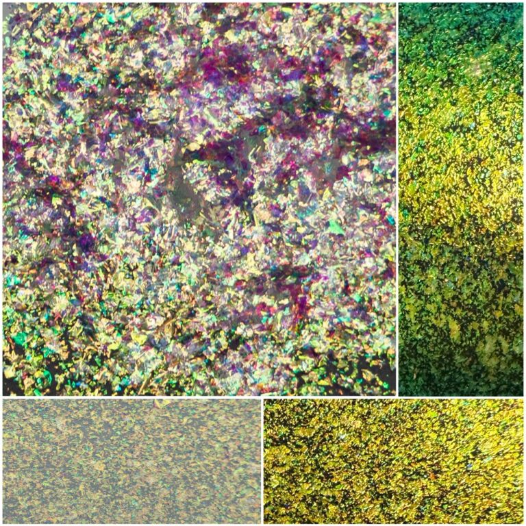 SilikMira Ice YGB utilizes a multi-layer optical design on a transparent silica and borosilicate flake substrate. Precision deposits of Titanium Dioxide and Tin Oxide form an interference stack that drives dramatic color travel from yellow to green to blue depending on viewing angle and light incidence.