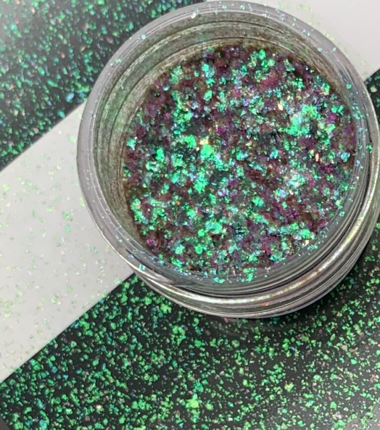 The synthetic base offers high purity and brightness, amplifying clarity, reflectivity, and overall color travel. In suspension systems such as gels and nail lacquers, the engineered flake geometry helps maintain even distribution and reduces settling, ensuring a consistent, high-impact finish. In pressed and loose powders, it excels as a topper or accent ingredient, delivering dramatic texture and multi-dimensional sparkle without overwhelming the base formula.