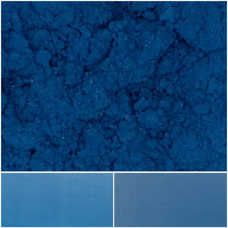 Smokey Vintage Denim Blue achieves its distinctive denim-inspired blue through ferric ferrocyanide (Prussian Blue) combined with titanium dioxide on a synthetic fluorphlogopite substrate. The exceptionally fine 1–10 μm particle size creates an ultra-smooth, almost creamy texture that delivers intense blue saturation with a sophisticated satin-matte finish. This fine particle size also enables superior skin adhesion and a weightless feel on application.