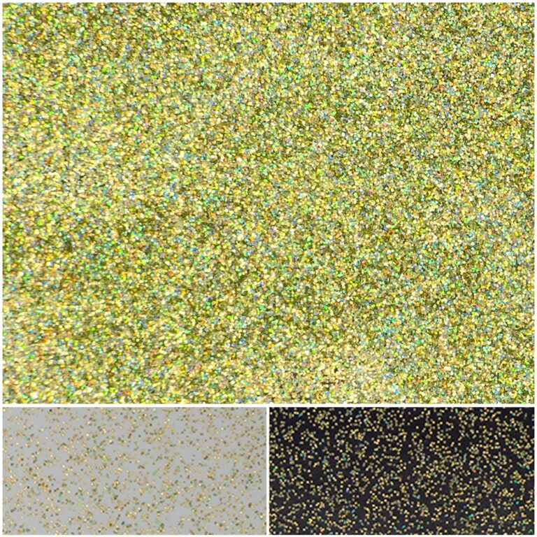 With a particle size of 152-254 microns, Spectra Galaxy Green-Gold provides bold, chunky sparkle with a distinctive green-gold color shift that creates depth and dimension in nail designs. This pigment is Ferro Free, Carmine Free, and TiO2 Free.