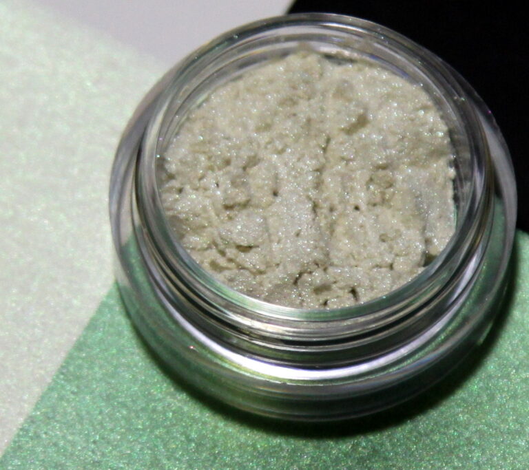 TC Bright Green achieves its luminous, white-to-green transformation through light interference. Built on a natural mica platelet coated with a precise layer of titanium dioxide (TiO2), the pigment appears white in the jar. Upon application, the TiO2 layer splits and reflects light in the green spectrum, producing a vivid, pearlescent effect without the use of conventional green colorants.