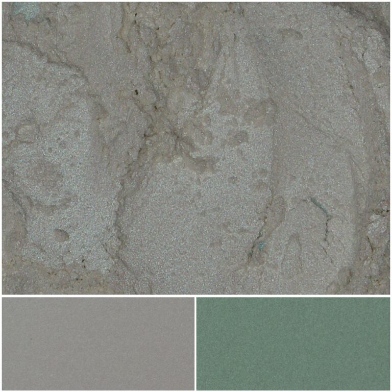 TC Bright Green achieves its luminous, white-to-green transformation through light interference. Built on a natural mica platelet coated with a precise layer of titanium dioxide (TiO2), the pigment appears white in the jar. Upon application, the TiO2 layer splits and reflects light in the green spectrum, producing a vivid, pearlescent effect without the use of conventional green colorants.