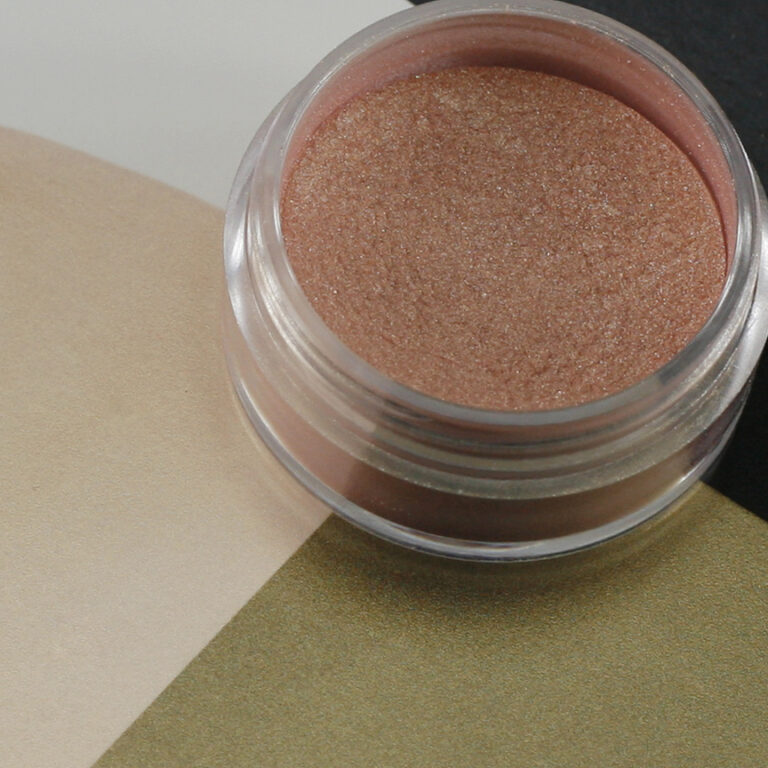 TC Camel is engineered on a natural mica substrate, coated with Titanium Dioxide and Iron Oxides to produce its signature warm bronze color. A precise amount of Carmine is added to introduce a subtle pink undertone, resulting in a complex, flesh-toned shade.