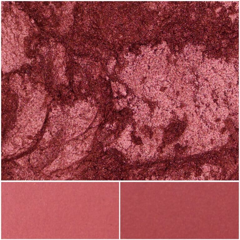 TC Ruby Red achieves its deep ruby hue through a dense coating of Iron Oxides (CI 77491) on a natural mica substrate. With a high pigment concentration (41–49%), it delivers exceptional opacity and color saturation, producing a true-to-color satin effect without the high sparkle associated with larger particle pearls.